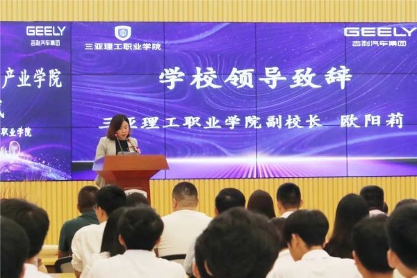副校長歐陽莉致辭表示:吉利新能源汽車產(chǎn)業(yè)學院的成立,是在落實新發(fā)布的職業(yè)教育法精神、助力海南教育卓越發(fā)展的重要時期,學校通過與吉利汽車合作辦學,打造“產(chǎn)學研用”一體化創(chuàng)新產(chǎn)業(yè)鏈條、融入海南發(fā)展、為自貿(mào)港培養(yǎng)和儲備人才的重要舉措。三亞理工職業(yè)學院將充分發(fā)揮產(chǎn)業(yè)學院的載體和橋梁作用,立足產(chǎn)業(yè)、親近產(chǎn)業(yè)、服務產(chǎn)業(yè),通過教材共編、標準共融、教學共育、基地共享、師資共培,建立以市場需求、行業(yè)標準、職業(yè)需要為導向的人才培養(yǎng)體系。同時,校企雙方共同打造協(xié)同創(chuàng)新平臺,聯(lián)合開展新能源汽車“三電”技術(shù)攻關(guān)、產(chǎn)品研發(fā)、成果轉(zhuǎn)化、項目孵化、社會服務,建立優(yōu)勢互補、互利共贏的協(xié)同機制,推進新能源汽車產(chǎn)業(yè)發(fā)展,加強智慧輸出、人才輸出、技術(shù)輸出。期待通過更加深入地產(chǎn)教融合,校企攜手,共同打造高水平新能源汽車技術(shù)技能人才孵化基地。