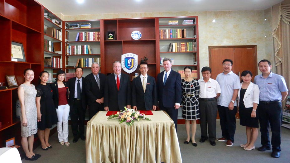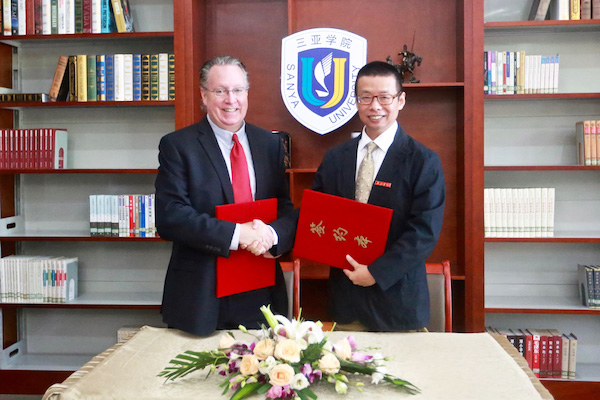 10月11日,三亞理工職業(yè)學(xué)院與美國(guó)紐約州伯克萊學(xué)院合作辦學(xué)項(xiàng)目在書(shū)山館中報(bào)告廳舉行簽約儀式,正式建立兩院合作伙伴關(guān)系,共同舉辦高職專(zhuān)科教育合作辦學(xué)項(xiàng)目,致力于培養(yǎng)具有較強(qiáng)創(chuàng)新能力和國(guó)際交往能力的學(xué)生。美國(guó)伯克萊學(xué)院校長(zhǎng)邁克爾·史密斯、校董兼副校長(zhǎng)荷西•塔瓦雷斯、法律顧問(wèn)威廉•布蘭特、全球教育聯(lián)盟海外項(xiàng)目主任李宏儒,院黨委書(shū)記、院長(zhǎng)陸丹,常務(wù)副院長(zhǎng)張滿效,院長(zhǎng)助理歐陽(yáng)莉及相關(guān)部門(mén)負(fù)責(zé)人出席活動(dòng)現(xiàn)場(chǎng)。