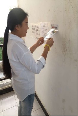 2月22日星期三下午,我們利用課余時(shí)間,拿上水桶、刷子、鏟子、抹布,到七棟宿舍集合。開(kāi)始了今天的任務(wù)----清理樓道里的小廣告;依照社區(qū)老師的安排大家分了工,每?jī)扇艘唤M。接著,我們匆匆忙忙地來(lái)到任務(wù)中要清理的樓道。
