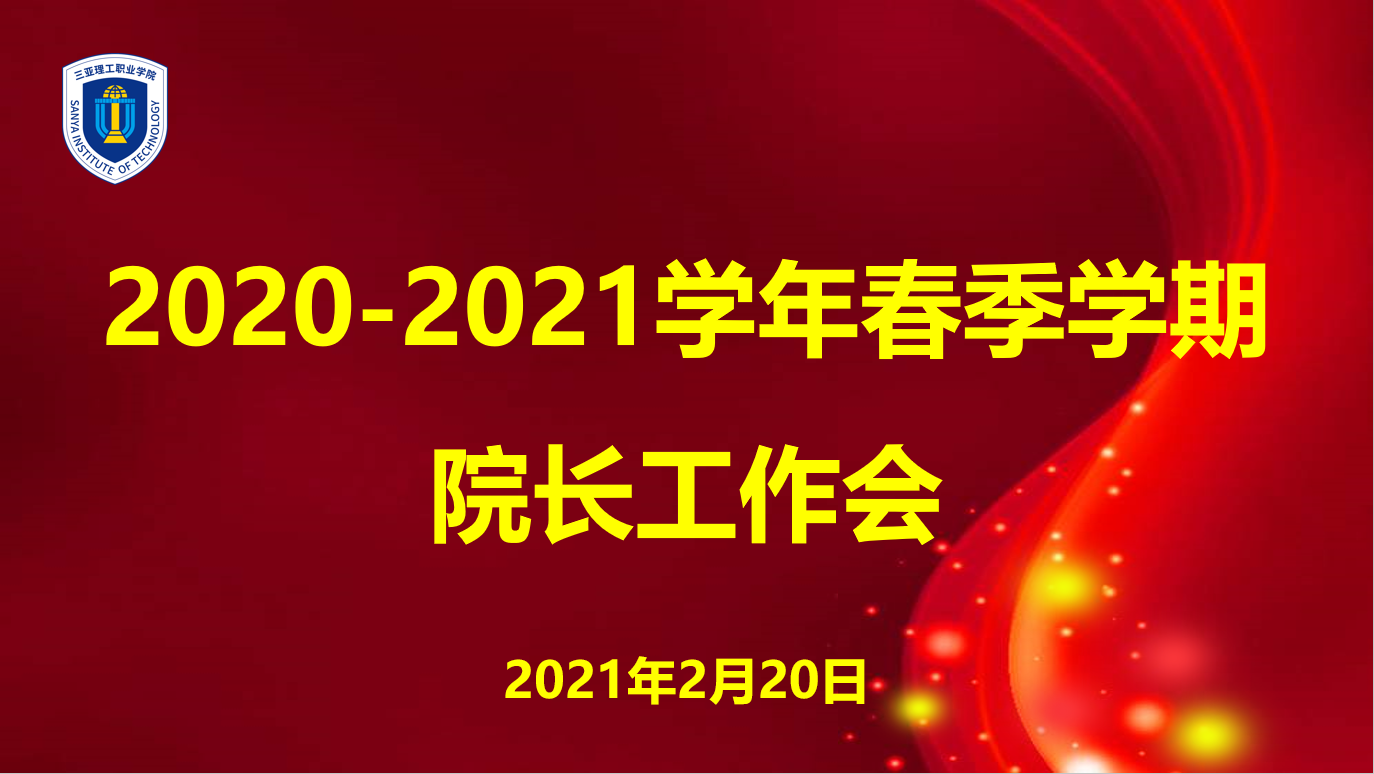 2021/2/242月20日,三亞理工職業(yè)學(xué)院于學(xué)校辦公樓卓越會議室召開了2021學(xué)年春季第一次院長工作會議。三亞理工職業(yè)學(xué)院執(zhí)行校長沈建勇、副校長歐陽莉、校長助理周文、李慧出席,會議由學(xué)校黨委副書記王昆強主持。各學(xué)院黨政負責(zé)人參會,機關(guān)各科室副科級以上干部列席此...