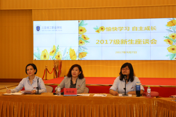 2017/9/82017年9月7日,我院在書山館二樓中報(bào)告廳召開以“愉快學(xué)習(xí)自主成長(zhǎng)”為主題的2017級(jí)新生座談會(huì)。學(xué)院副院長(zhǎng)歐陽莉、院辦主任楊麗娜、教務(wù)處副處長(zhǎng)王木桃、學(xué)工處副處長(zhǎng)王強(qiáng)、各系部主任及教師和49名學(xué)生代表出席,教務(wù)處副處長(zhǎng)王木桃主持座談會(huì)。新生座...