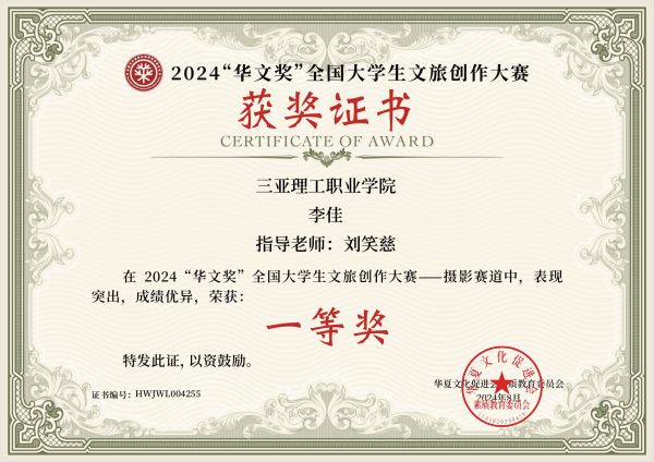 三亞理工職業(yè)學院旅游專業(yè)群在2024“華文獎”全國大學生文旅創(chuàng)作競賽中再創(chuàng)佳績