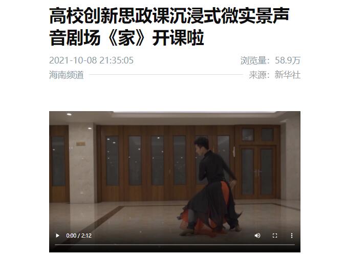 【中新網(wǎng)】三亞兩高校沉浸式微實(shí)景聲音劇場(chǎng)思政課《家》開課