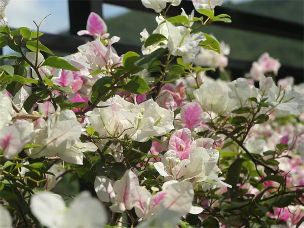 三角梅在枝頭肆意綻放,粉白與玫紅交織,似是大自然打翻的調(diào)色盤。藍(lán)天白云下,繁茂枝葉間,花朵嬌艷欲滴。遠(yuǎn)處建筑靜立,湖水悠悠,綠樹環(huán)繞。這一方天地,滿是生機(jī)與詩意,每一眼,都能邂逅自然的溫柔與美好。(攝影:符榆婧)(編輯:九顆糖)...