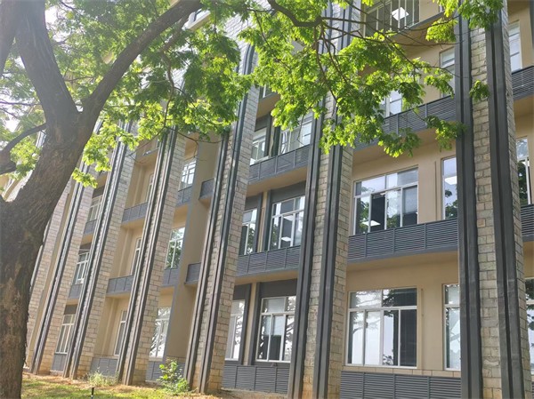 樹木蓬勃生長,枝葉在藍天的幕布下肆意舒展。陽光穿透葉片,灑下細碎光影。鳥兒在枝頭跳躍歡唱,為這方天地增添靈動。在這里,知識的殿堂與自然的生機相融,孕育著希望與夢想。
