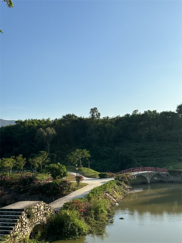 校園的湖畔,時光悠然。湖水如鏡,黑天鵝優(yōu)雅游弋,泛起層層漣漪。紅橋橫跨湖面,與綠樹繁花相映成趣,似一幅靈動的水彩畫。