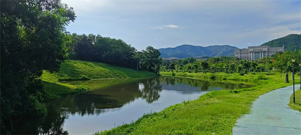 在這方天地,藍天與白云纏綿,湖水如鏡,攬盡青山、建筑與繁花。雞蛋花綻露溫柔,鳳凰木燃燒熾熱,小徑蜿蜒,串聯(lián)起亭臺與蔥郁。每一眼都是自然與人文的和鳴,漫步其間,喧囂遠遁,心浸在這寧靜又鮮活的畫里,不愿醒。