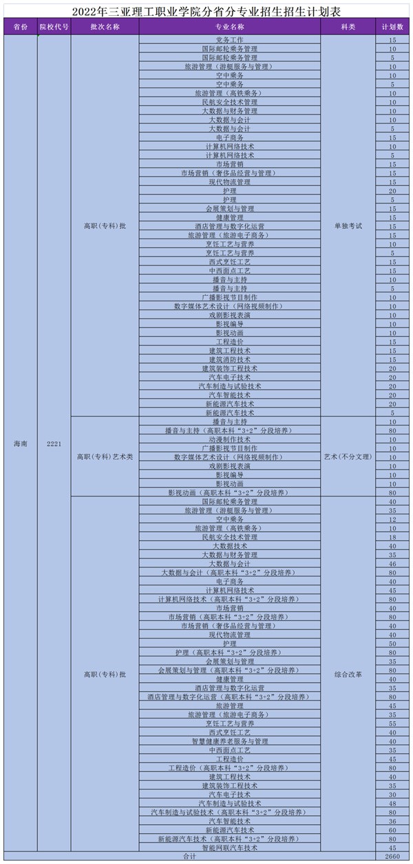 為便于廣大考生、考生家長(zhǎng)及社會(huì)各界了解三亞理工職業(yè)學(xué)院2022年招生計(jì)劃相關(guān)信息,特整理學(xué)校2022年在全國(guó)29個(gè)省市招生專業(yè)計(jì)劃供考生報(bào)考參考。同學(xué)們來(lái)自五湖四海,長(zhǎng)路漫漫,追夢(mèng)不停。熱忱期待各路學(xué)子報(bào)考三亞理工職業(yè)學(xué)院,一起相約金色九月,在三亞理工職業(yè)學(xué)院展開(kāi)你的大學(xué)追夢(mèng)計(jì)劃。