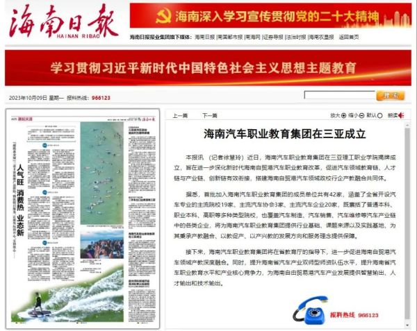 2023年9月27日,海南汽車職業(yè)教育集團(tuán)在三亞理工職業(yè)學(xué)院揭牌成立,旨在進(jìn)一步深化新時(shí)代海南自貿(mào)港汽車職業(yè)教育改革,促進(jìn)汽車領(lǐng)域教育鏈、人才鏈與產(chǎn)業(yè)鏈、創(chuàng)新鏈有效銜接,搭建海南自貿(mào)港汽車領(lǐng)域政校行企產(chǎn)教融合共同體。