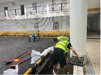 臺(tái)風(fēng)預(yù)警一解除,學(xué)校后勤部門(mén)迅速開(kāi)始清理工作,對(duì)學(xué)校相關(guān)設(shè)施設(shè)備進(jìn)行檢查復(fù)原,清理吹倒樹(shù)木的枝葉、補(bǔ)救吹毀的器材,及時(shí)消除安全隱患。
