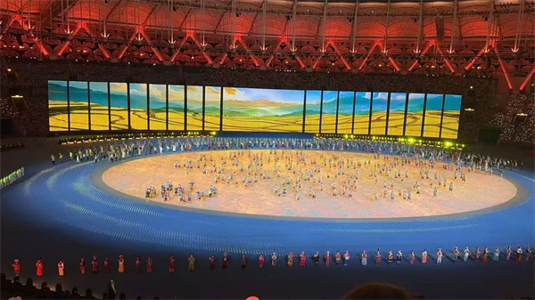 我?guī)状伪滑F場的表演所震撼,現場每一名觀眾都成為開幕式“主角”,全場萬人合唱,一起熱情吶喊,我們共同感受著祖國的強盛與繁榮,讓我熱淚盈眶,璀璨的燈光、震撼的音效、精美的舞臺效果與科技的碰撞的方式,通過演出展示給全國。開幕式多處彰顯了我們的創(chuàng)新能力和高科技應用。這是一次令人難忘的視聽盛宴,它展示了我們祖國的強大和創(chuàng)新力。我為能見證這個歷史時刻感到無比榮幸和自豪。