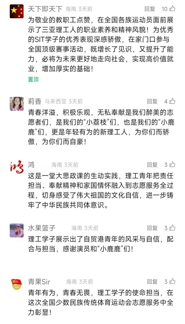在第十二屆少數(shù)民族傳統(tǒng)體育運(yùn)動(dòng)會(huì)的盛大舞臺(tái)上,三亞理工職業(yè)學(xué)院以積極擔(dān)當(dāng)?shù)淖藨B(tài)閃耀光芒。他們用青春的熱情與無私的奉獻(xiàn),為這場(chǎng)民族體育盛會(huì)增添了濃墨重彩的一筆。彰顯了三亞理工職業(yè)學(xué)院學(xué)子良好的精神風(fēng)貌與社會(huì)擔(dān)當(dāng),也在民族體育交流與融合的進(jìn)程中,留下了屬于學(xué)校和志愿者們的深刻印記,為未來學(xué)校在推動(dòng)多元文化交流與大型活動(dòng)參與方面積累了寶貴的經(jīng)驗(yàn)與財(cái)富,更為促進(jìn)民族團(tuán)結(jié)和社會(huì)和諧貢獻(xiàn)了青春力量。