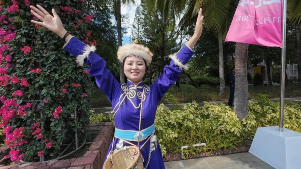 學(xué)生志愿者黃桃玉:民族大聯(lián)歡活動(dòng)當(dāng)天的天氣給我志愿服務(wù)經(jīng)歷增添了一抹別樣的色彩,尤其是穿著厚實(shí)的名族服裝,帶著毛茸茸的帽子時(shí),這段經(jīng)歷使我記憶猶新。盡管汗水已經(jīng)浸濕了衣衫,但我依然保持著微笑和耐心,給參加活動(dòng)的來賓分發(fā)民族特色手環(huán),那一聲聲“謝謝”就像清涼的微風(fēng)吹散了些許燥熱。