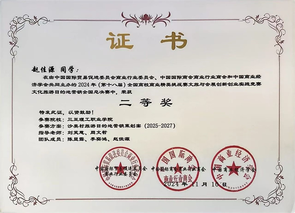 近日,2024(第十八屆)全國(guó)高校商業(yè)精英挑戰(zhàn)賽文旅與會(huì)展創(chuàng)新創(chuàng)業(yè)實(shí)踐競(jìng)賽圓滿落幕。三亞理工職業(yè)學(xué)院代表隊(duì)在此次競(jìng)賽中表現(xiàn)出色,榮獲多個(gè)獎(jiǎng)項(xiàng),并獲最佳院校組織獎(jiǎng),展現(xiàn)了學(xué)校在文旅與會(huì)展領(lǐng)域的深厚底蘊(yùn)和創(chuàng)新實(shí)力。