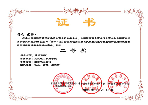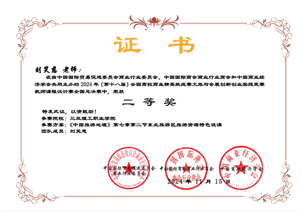 在本屆競(jìng)賽的教師課程設(shè)計(jì)賽全國(guó)總決賽中學(xué)校參賽教師團(tuán)隊(duì)?wèi){借出色的課程設(shè)計(jì)理念和實(shí)踐成果,成功奪得三項(xiàng)二等獎(jiǎng)。這一成績(jī)不僅體現(xiàn)了學(xué)校教師在課程設(shè)計(jì)方面的專業(yè)素養(yǎng)和創(chuàng)新精神,也為學(xué)校在文旅與會(huì)展教育領(lǐng)域的持續(xù)發(fā)展奠定了堅(jiān)實(shí)基礎(chǔ)。