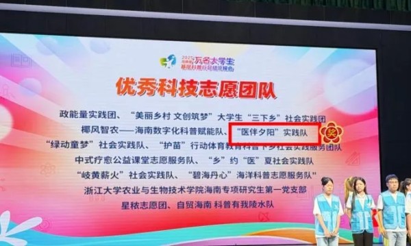 “醫(yī)伴·夕陽”助老志愿服務(wù)隊自成立以來,始終致力于服務(wù)老年群體,在各類志愿服務(wù)活動中表現(xiàn)突出,曾榮獲第七屆中國青年志愿服務(wù)項目大賽全國銅獎、2024年海南省青年志愿服務(wù)項目大賽省級銅獎以及2025年海南省萬名大學(xué)生基層科普行“優(yōu)秀科技志愿團(tuán)隊”等多項榮譽(yù)。團(tuán)隊的服務(wù)事跡也先后被海南日報、海南發(fā)布、海南科協(xié)、三亞科協(xié)等多家媒體報道,獲得了社會的廣泛關(guān)注與好評。