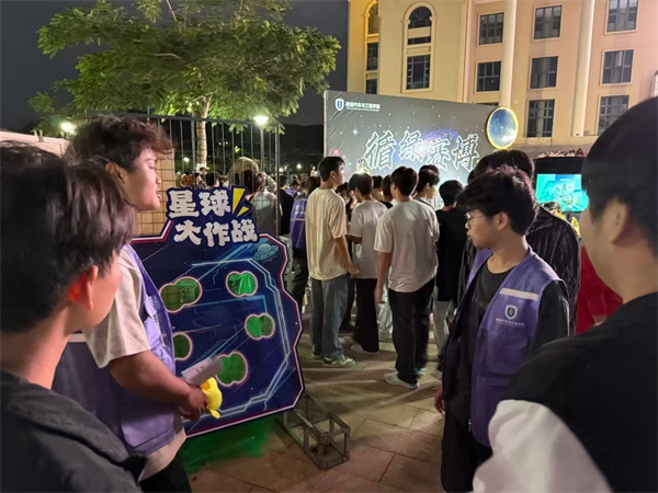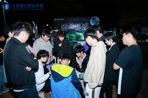 學(xué)校智能汽車與工程學(xué)院的“循綠賽博”星球,主打科技與綠色的碰撞。“智改車潮”探索新技術(shù)在汽車領(lǐng)域的酷炫應(yīng)用,“碼創(chuàng)工坊”用AI+編程實(shí)現(xiàn)從代碼到實(shí)物的創(chuàng)造,“車韻文創(chuàng)”將汽車美學(xué)融入潮流設(shè)計(jì),“椰韻非遺”則讓海南本土傳統(tǒng)手藝與綠色主題相融,工科生的創(chuàng)新力與環(huán)保理念在此完美詮釋。