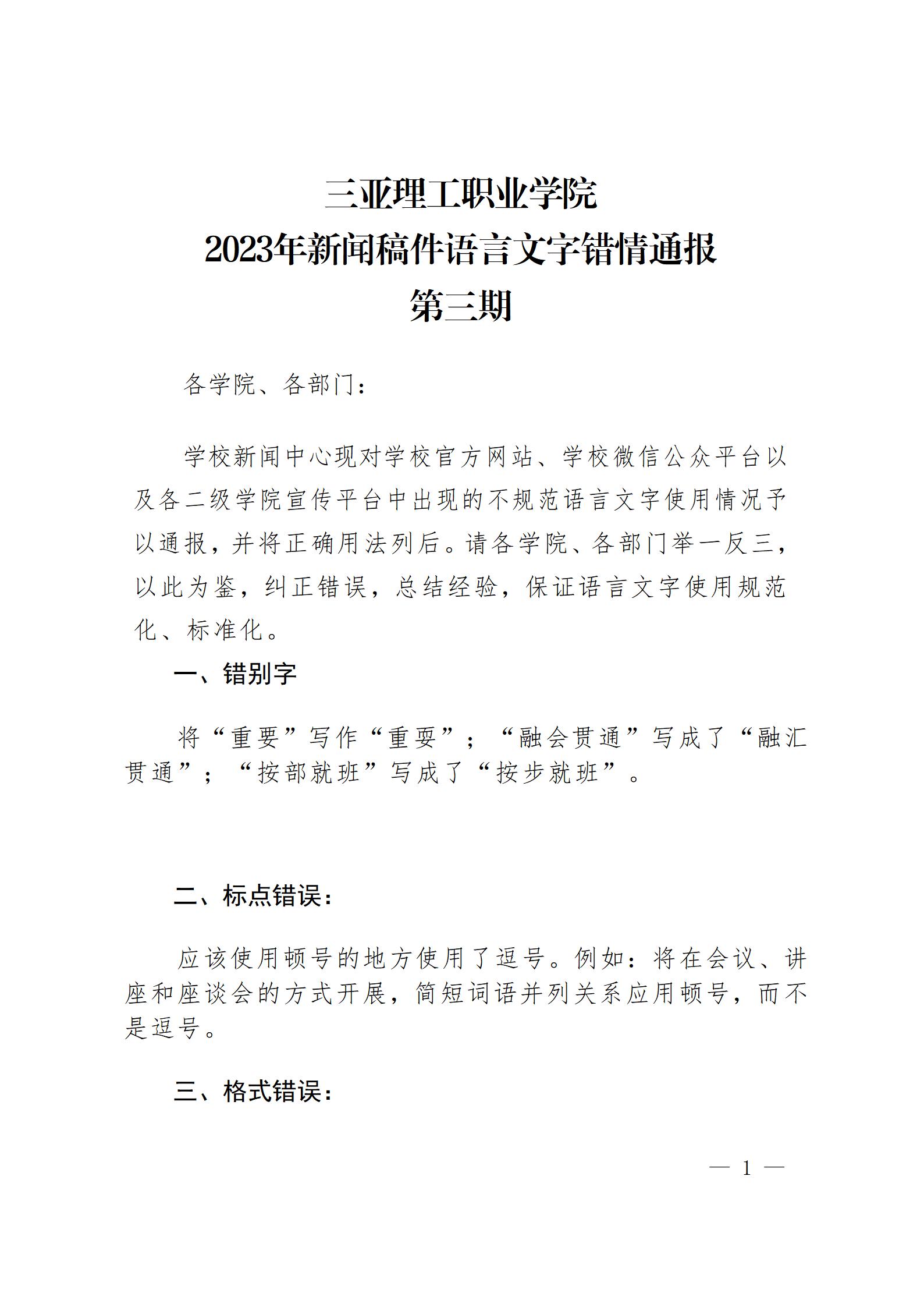 上一篇:三亞理工職業(yè)學院2023年新聞稿件語言文字錯情通報第四期 下一篇:三亞理辦字〔2024〕1號 三亞理工職業(yè)學院關(guān)于校內(nèi)公文錯情(第一期)的通報