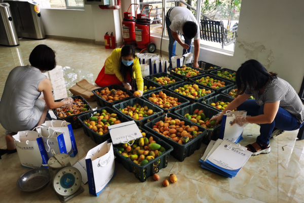 學院工會攜手中層干部在這陽光燦爛的日子里到后山芒果園與校園管理部共同采摘,為在這特殊的日子里,希望這抹金黃能夠溫暖你,給你力量,伴你一起迎來校園相聚的時刻。在校的老師由部門負責人親自送達,而因疫情影響咱不能返校的老師們,我們依舊通過快遞的方式將這些金燦燦的“小太陽”送達你心。