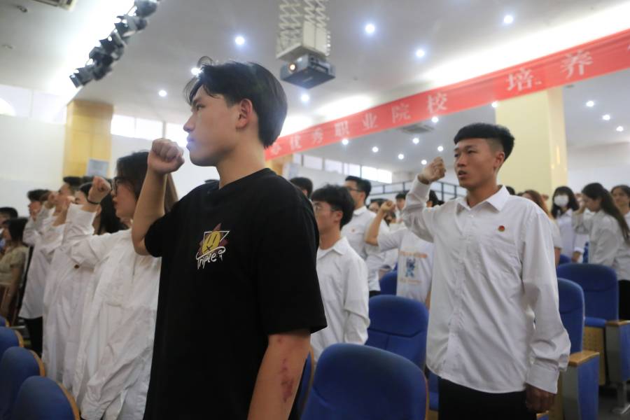 開班典禮在莊嚴(yán)的國(guó)歌聲中拉開序幕。數(shù)字媒體學(xué)院團(tuán)委副書記遲文強(qiáng)同志帶領(lǐng)全體黨員重溫入黨誓詞;航空服務(wù)產(chǎn)業(yè)學(xué)院王亦飛代表新黨員進(jìn)行發(fā)言;旅游與康體產(chǎn)業(yè)學(xué)院徐澤嵩代表學(xué)員進(jìn)行發(fā)言。
