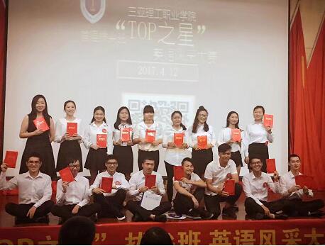 2.教學(xué)方法:采用多種教學(xué)模式,靈活采用環(huán)形、U型等座位形式,增加學(xué)生的課堂參與度:遵循以學(xué)生為主體,盡可能地減少傳統(tǒng)的直接講授法,更多地采用英語課堂活動(dòng),英語類比賽來促進(jìn)英語口語教學(xué)。如2016-2017學(xué)年春季學(xué)期三亞理工職業(yè)學(xué)院公共基礎(chǔ)部英語教研組圍繞拔尖班舉辦了“TOP之星”英語風(fēng)采大賽,大賽分英語演講、英語情景對(duì)話、英語電影配音三個(gè)部分,拔尖班的的同學(xué)們興致昂揚(yáng)踴躍參加,充分發(fā)揮了各自在英語方面的優(yōu)勢(shì),極大地提升了自己的口語能力。