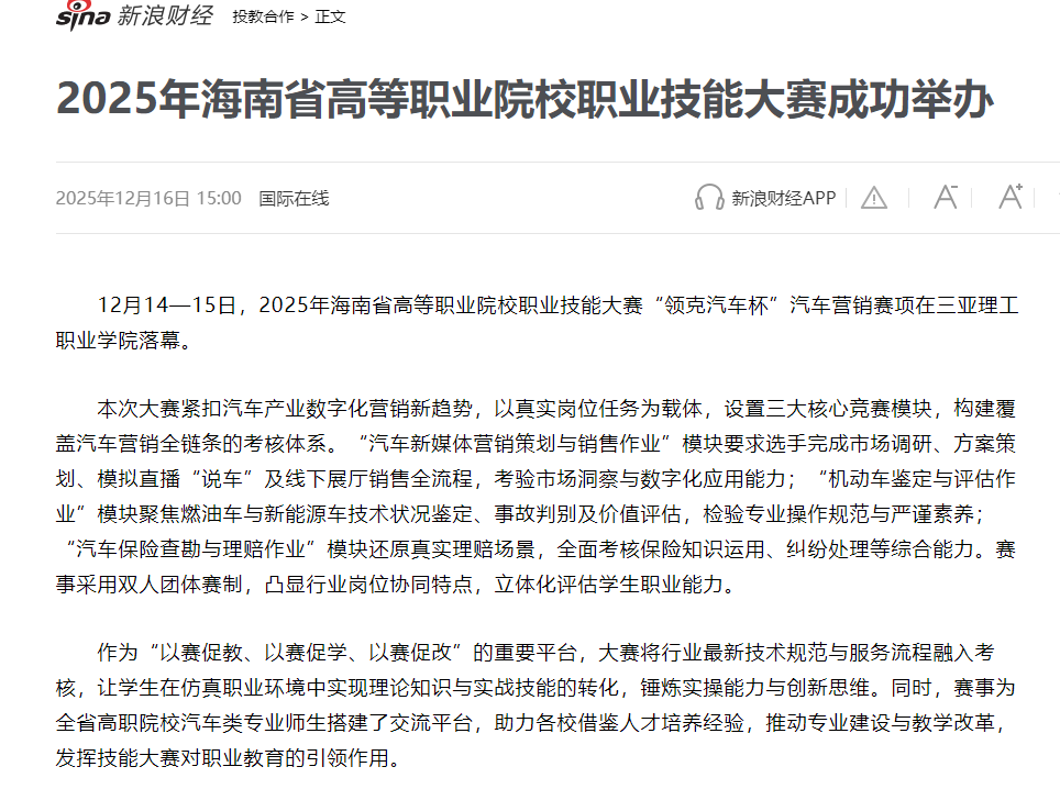 【新浪財(cái)經(jīng)】2025年海南省高等職業(yè)院校職業(yè)技能大賽成功舉辦