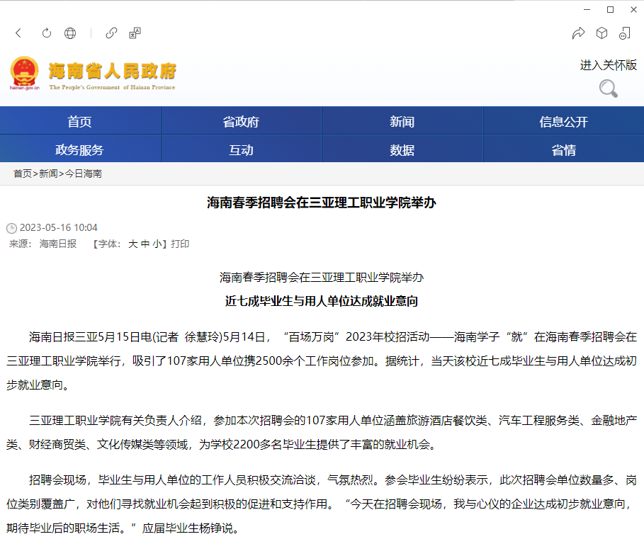 【海南省人民政府】海南春季招聘會在三亞理工職業(yè)學(xué)院舉辦