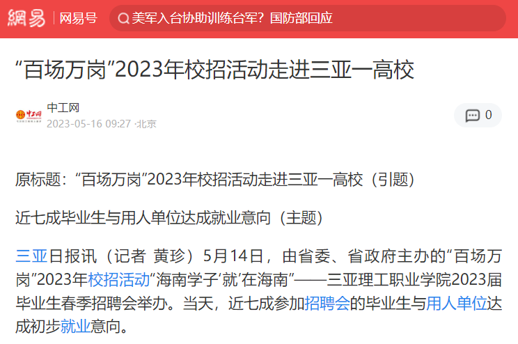 【中工網(wǎng)】“百場(chǎng)萬(wàn)崗”2023年校招活動(dòng)走進(jìn)三亞一高校
