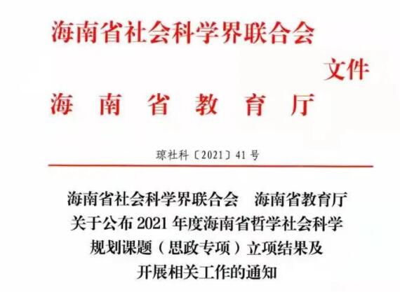 2021/11/25近日,海南省社會(huì)科學(xué)界聯(lián)合會(huì)、海南省教育廳聯(lián)合公布了2021年度海南省哲學(xué)社會(huì)科學(xué)規(guī)劃課題(思政專項(xiàng))立項(xiàng)結(jié)果,三亞理工職業(yè)學(xué)院的兩項(xiàng)課題獲批,分別是公共基礎(chǔ)教學(xué)部朱玥主持的《“三全育人”視閾下高校德育教育實(shí)現(xiàn)路徑創(chuàng)新研究》(hnsz2021-4...
