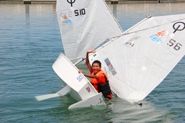 2012/8/16“在海里上課太有意思了,我們邊玩海邊學(xué)技術(shù),既享受又能學(xué)到知識,這樣的實踐活動我們都喜歡!庇瓮I(yè)的黎超同學(xué)興致勃勃地告訴記者。8月15日,游艇專業(yè)組織學(xué)生參加暑期海上特色教學(xué)活動:OP帆船落水后,上船動作分解。在實踐教學(xué)活動中,由一名高年級學(xué)...