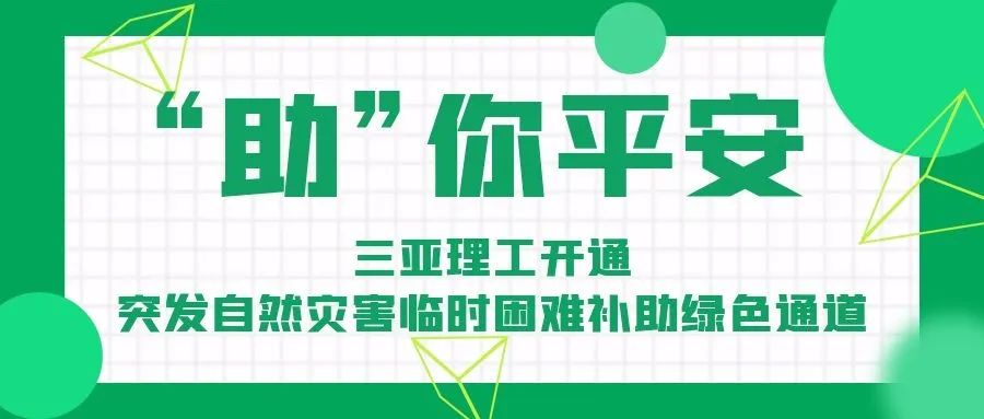 三亞理工職業(yè)學(xué)院開通突發(fā)自然災(zāi)害困難補(bǔ)助綠色通道親愛的同學(xué)們:新年伊始,我國(guó)部分地區(qū)發(fā)生地震、泥石流等自然災(zāi)害。1月22日,云南省昭通市鎮(zhèn)雄縣發(fā)生山體滑坡;1月23日新疆阿克蘇地區(qū)烏什縣發(fā)生7.1級(jí)地震。學(xué)校時(shí)刻關(guān)注突發(fā)自然災(zāi)害對(duì)學(xué)校學(xué)生的影響,...