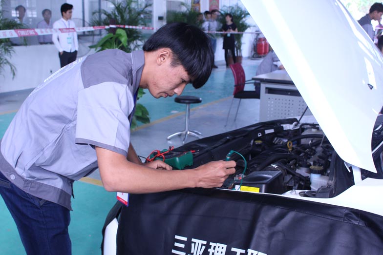 由海南省教育廳主辦、三亞理工職業(yè)學(xué)院承辦的2017年全省職業(yè)院校技能大賽高職組“汽車檢測(cè)與維修”賽項(xiàng)在我校開賽,海南省教育廳高等教育處蘇永光副處長(zhǎng)到比賽現(xiàn)場(chǎng)觀摩比賽。