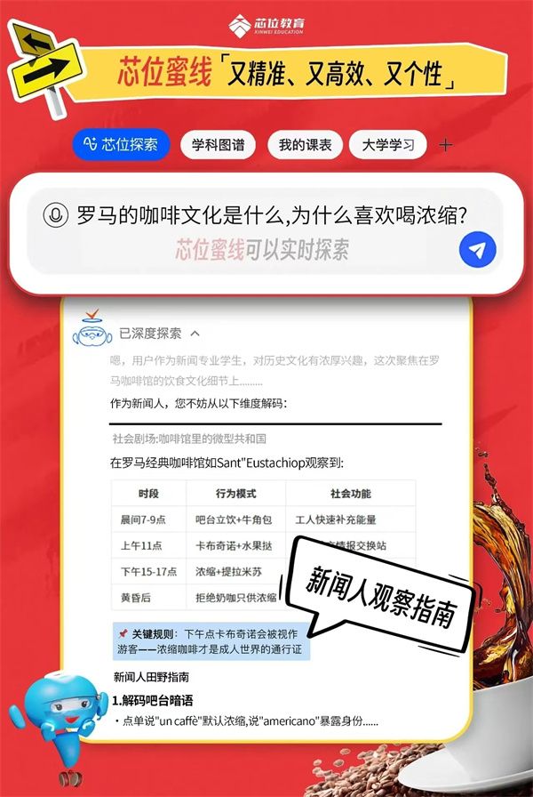 芯位蜜線,基于 AI 的大學(xué)學(xué)業(yè)全鏈路支持系統(tǒng),致力于打造「千人千面」的前瞻性教育服務(wù)模式,精準(zhǔn)響應(yīng)教師與學(xué)生的個(gè)性化需求,實(shí)現(xiàn)教與學(xué)“短距”閉環(huán),貫通從學(xué)業(yè)到職業(yè)的持續(xù)成長路徑![]()