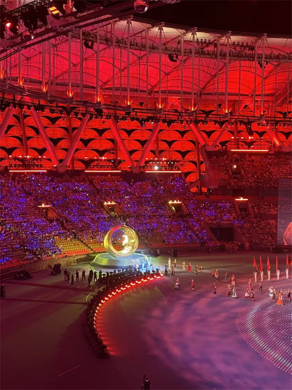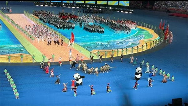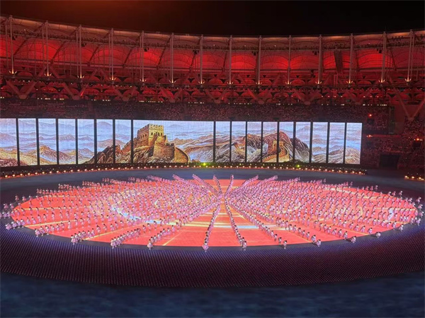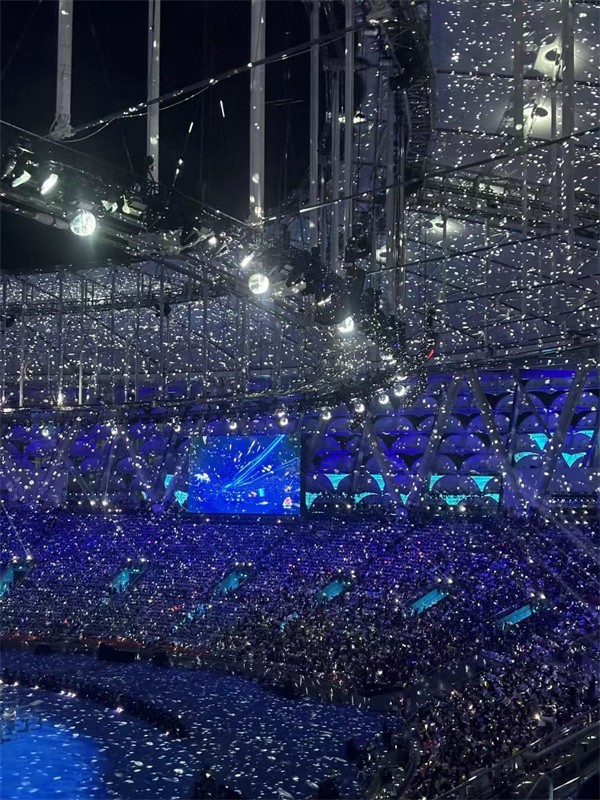 我?guī)状伪滑F(xiàn)場(chǎng)的表演所震撼,現(xiàn)場(chǎng)每一名觀眾都成為開(kāi)幕式“主角”,全場(chǎng)萬(wàn)人合唱,一起熱情吶喊,我們共同感受著祖國(guó)的強(qiáng)盛與繁榮,讓我熱淚盈眶,璀璨的燈光、震撼的音效、精美的舞臺(tái)效果與科技的碰撞的方式,通過(guò)演出展示給全國(guó)。開(kāi)幕式多處彰顯了我們的創(chuàng)新能力和高科技應(yīng)用。這是一次令人難忘的視聽(tīng)盛宴,它展示了我們祖國(guó)的強(qiáng)大和創(chuàng)新力。我為能見(jiàn)證這個(gè)歷史時(shí)刻感到無(wú)比榮幸和自豪。