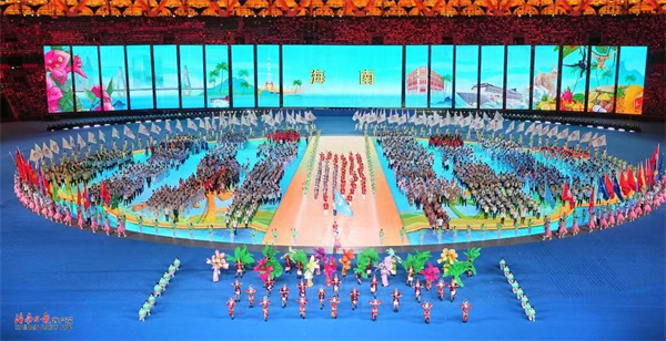 海南省代表團(tuán)在開(kāi)幕式上入場(chǎng)歡迎各方來(lái)賓