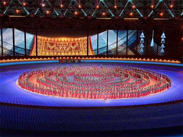 開(kāi)幕式表演之后,以“中華民族大家庭,同心圓夢(mèng)新征程”為主題的文體展演拉開(kāi)序幕。展演分為“天下一脈”“中華一體”“團(tuán)結(jié)一心”三個(gè)篇章,展現(xiàn)了中華文化的源遠(yuǎn)流長(zhǎng)、燦爛輝煌,展現(xiàn)了各族兒女牢固樹(shù)立休戚與共、榮辱與共、生死與共、命運(yùn)與共的共同體理念,團(tuán)結(jié)奮斗,揚(yáng)帆新征程,共圓中國(guó)夢(mèng)。演出在《歌唱祖國(guó)》的歌聲中落下帷幕,各族人民共同祝福偉大祖國(guó)繁榮昌盛。