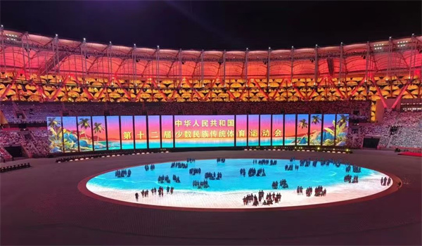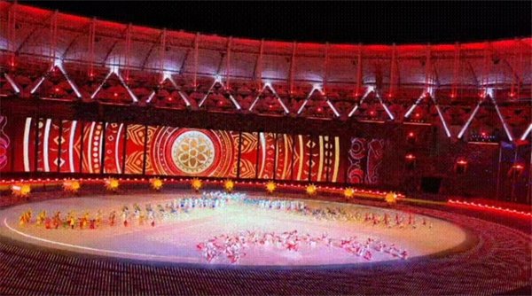 21時(shí)中華人民共和國(guó)第十二屆少數(shù)民族傳統(tǒng)體育運(yùn)動(dòng)會(huì)正式開(kāi)幕!剎那間,掌聲、歡呼聲響徹夜空,三亞市體育中心成為歡樂(lè)的海洋。