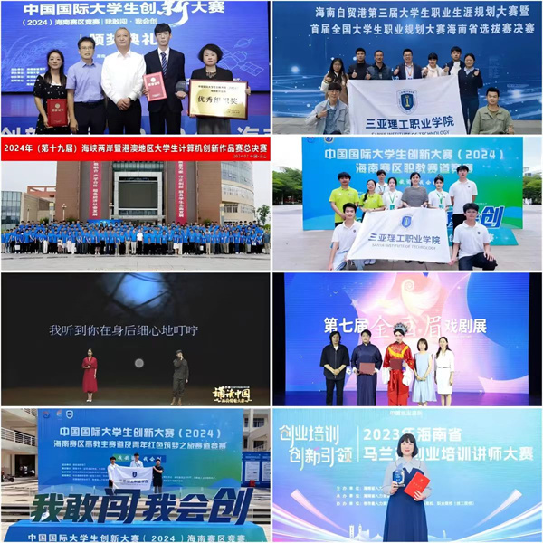 2024年,三亞理工職業(yè)學(xué)院師生在各項(xiàng)省級(jí)賽事和國(guó)家級(jí)賽事中榮獲眾多獎(jiǎng)項(xiàng),所獲獎(jiǎng)項(xiàng)包括文旅與會(huì)展類、朗誦類、大學(xué)生創(chuàng)新類、創(chuàng)業(yè)培訓(xùn)類、戲劇類、計(jì)算機(jī)創(chuàng)新類、文旅創(chuàng)作類、會(huì)展文案類、大學(xué)生職業(yè)規(guī)劃類等多個(gè)門類和項(xiàng)目。