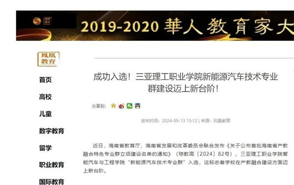 成功入選!三亞理工職業(yè)學(xué)院新能源汽車技術(shù)專業(yè)群建設(shè)邁上新臺階!