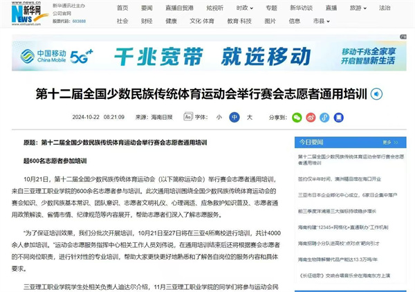 在第十二屆少數(shù)民族傳統(tǒng)體育運動會的盛大舞臺上,三亞理工職業(yè)學(xué)院以積極擔當?shù)淖藨B(tài)閃耀光芒。他們用青春的熱情與無私的奉獻,為這場民族體育盛會增添了濃墨重彩的一筆。彰顯了三亞理工職業(yè)學(xué)院學(xué)子良好的精神風(fēng)貌與社會擔當,也在民族體育交流與融合的進程中,留下了屬于學(xué)校和志愿者們的深刻印記,為未來學(xué)校在推動多元文化交流與大型活動參與方面積累了寶貴的經(jīng)驗與財富,更為促進民族團結(jié)和社會和諧貢獻了青春力量。