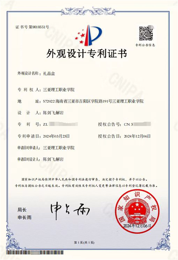 師生團隊以非遺黎錦紋樣為元素,聯(lián)合設(shè)計生產(chǎn)可市場化的包裝禮盒并投入生產(chǎn);孵化學生團隊課程中設(shè)計的“椰寶”形象玩偶并開發(fā)制作以“椰寶”為形象的動畫短片,實現(xiàn)了文化藝術(shù)與數(shù)字技術(shù)的融合,將課程與市場完美對接,推動了跨界創(chuàng)新人才的培養(yǎng)。