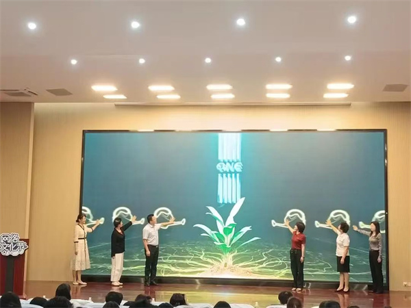 在熱烈的掌聲中,與會(huì)領(lǐng)導(dǎo)共同登臺(tái)啟動(dòng)“網(wǎng)絡(luò)數(shù)字之樹”儀式。學(xué)院黨總支副書記田寧宣布網(wǎng)絡(luò)文化節(jié)正式開幕!隨著主題動(dòng)畫在屏幕點(diǎn)亮,象征科技賦能與青春夢(mèng)想的光束交匯相融,標(biāo)志著為期一個(gè)月的文化節(jié)正式拉開帷幕。