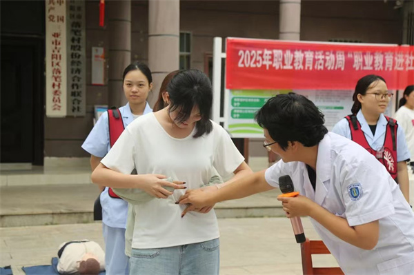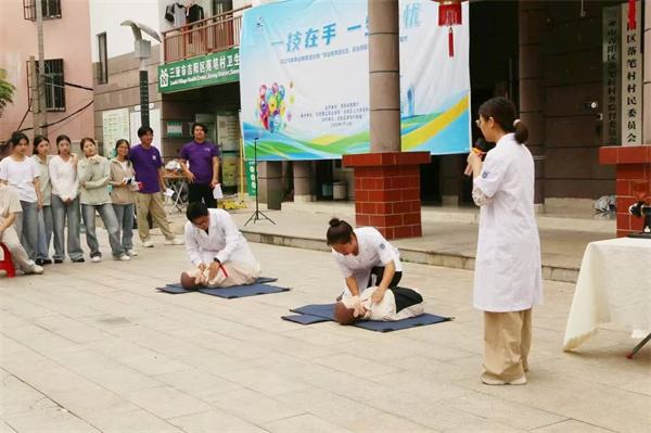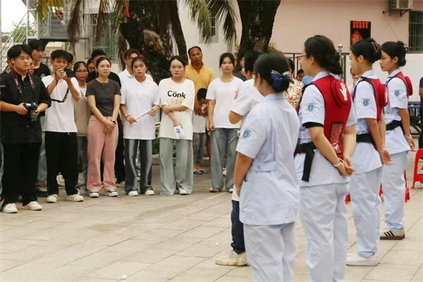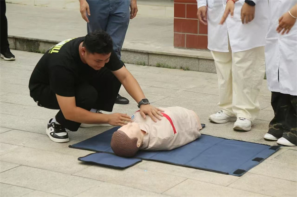 旅游與康體產(chǎn)業(yè)學(xué)院的急救技能展示區(qū)圍滿了認(rèn)真學(xué)習(xí)的居民。師生們通過模擬教具演示心肺復(fù)蘇(CPR)、海姆立克急救法等實用技能,詳細講解操作要點和黃金救援時間。“按壓頻率要保持每分鐘 100-120 次”“打開氣道時需使下頜角與耳垂連線垂直地面”…… 在師生指導(dǎo)下,多位居民上臺實操練習(xí),現(xiàn)場形成“人人學(xué)急救、急救為人人” 的濃厚氛圍。