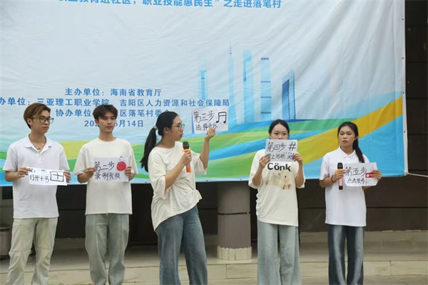 本次活動由海南省教育廳主辦,吉陽區(qū)人力資源和社會保障局和三亞理工職業(yè)學(xué)院承辦,在落筆村委會的大力支持下,學(xué)校智能汽車與工程學(xué)院、國際郵輪游艇產(chǎn)業(yè)學(xué)院、旅游與康體產(chǎn)業(yè)學(xué)院、經(jīng)濟與貿(mào)易學(xué)院和數(shù)字媒體學(xué)院師生齊聚社區(qū),通過技能展示和互動體驗等形式,向居民全方位呈現(xiàn)職業(yè)教育的魅力與實用價值,學(xué)校專業(yè)學(xué)子大展風(fēng)采。