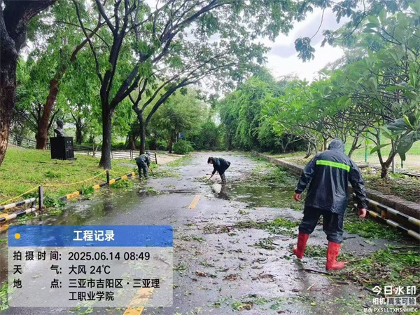 6月13日,臺(tái)風(fēng)“蝴蝶”來襲,給三亞地區(qū)帶來了嚴(yán)峻的考驗(yàn)。在這場(chǎng)與臺(tái)風(fēng)的較量中,三亞理工職業(yè)學(xué)院全體師生眾志成城、團(tuán)結(jié)一心,共同守護(hù)校園安全,最大程度降低了臺(tái)風(fēng)帶來的影響。目前,校園秩序已基本恢復(fù)正常,學(xué)生的學(xué)習(xí)和生活也步入正軌。讓我們一同回顧那些溫暖而感人的抗臺(tái)瞬間。