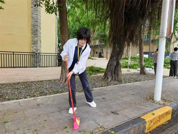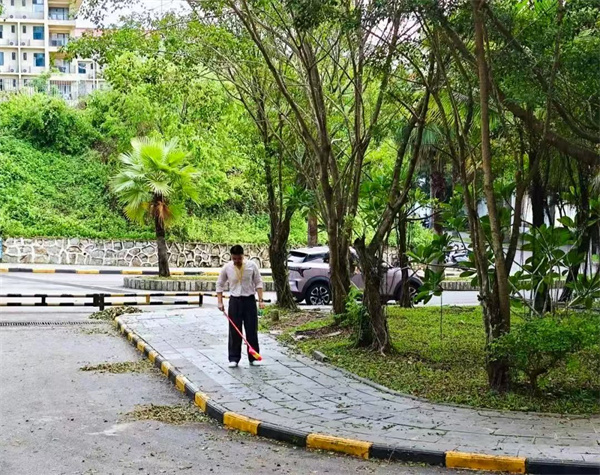 每一片落葉的拾起、每一處積水的疏通,都是黨員干部老師們“以校為家” 的生動注腳。如今的校園,道路寬敞整潔,綠植生機勃發(fā),教室窗明幾凈。這場主題黨日活動,不僅是一次災(zāi)后重建行動,更是三亞理工黨員隊伍凝聚力的生動展現(xiàn)。正如一位參與教師所說:"當我們用勞動讓校園重?zé)ü獠蕰r,也讓師生看到了黨員的先鋒力量。"