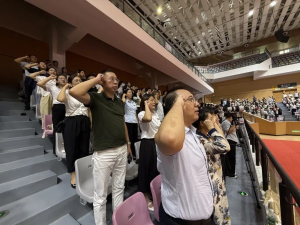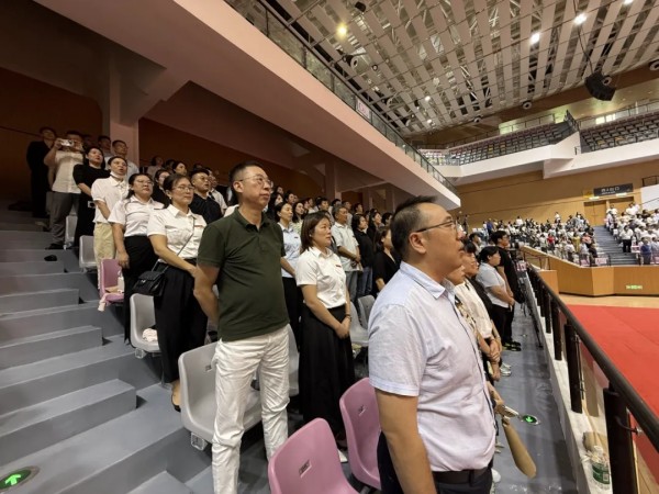 伴隨著雄壯激昂的《中華人民共和國國歌》,大會正式拉開帷幕。全體教職工起立肅立,歌聲中滿含對教育事業(yè)的赤誠與熱愛,也傳遞著開啟新學期的堅定信念。