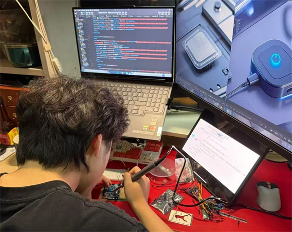 團隊成員將宿舍作為“戰(zhàn)場”,反復(fù)排查硬件兼容和算法邏輯,為一行報錯熬到深夜。每當(dāng)功能突破,那些汗水與疲憊,都成了前進(jìn)路上最珍貴的注腳,見證著成員們向目標(biāo)奔赴的倔強。