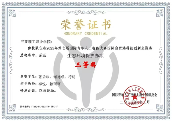 第七屆國(guó)際青年人工智能大賽國(guó)際自貿(mào)港科技創(chuàng)新主題賽總決賽獲獎(jiǎng)