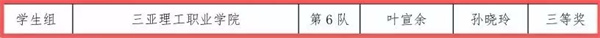中國(guó)國(guó)際大學(xué)生創(chuàng)新大賽(2025)海南賽區(qū)總決賽,三亞理工職業(yè)學(xué)院1個(gè)參賽項(xiàng)目獲職教賽道省賽金獎(jiǎng)、2個(gè)項(xiàng)目獲銀獎(jiǎng)、1個(gè)項(xiàng)目獲銅獎(jiǎng);1個(gè)參賽項(xiàng)目獲紅旅賽道省賽銅獎(jiǎng),創(chuàng)造該項(xiàng)賽事本校歷屆參賽最佳成績(jī)。符秀麗和周芊宏老師榮獲“優(yōu)秀指導(dǎo)老師”稱號(hào)。